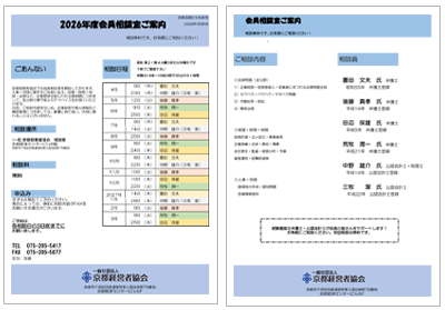 京都経営者協会では会員相談室を開設しております。この相談室では人事・労務相談に加えて、京都の第一線で活躍しておられる弁護士・公認会計士の先生方を嘱託相談人に擁し経営・財務・税務・法律等、企業経営全般に関する諸問題について、より専門的な立場から会員の皆様のご相談に応じ、大変好評を得ております。
